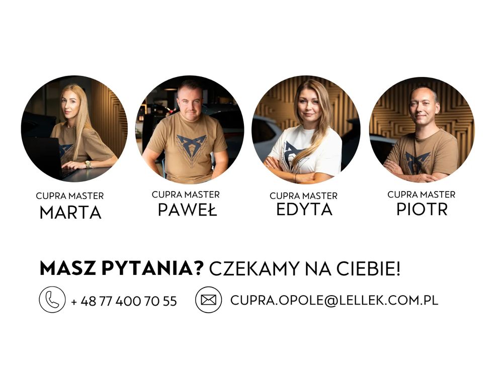 Nasza oferta nie kończy się na samochodzie. Polecamy:FinansowanieDobierzemy najkorzystniejsze oferty leasingu, wynajmu długoterminowego lub kredytu oraz najmu (nowość!)UbezpieczenieZaoferujemy bogaty zakres ubezpieczeń w atrakcyjnych cenach pakietu dealerskiego.PakietSerwisowyZagwarantujemy regularną i profesjonalną kontrolę najważniejszych części i funkcji samochodu.OdkupProfesjonalnie wycenimy i odkupimy obecnie użytkowany samochód niezależnie od marki- zapytaj o dodatkowy rabat! *DetailingZwiększymy żywotność lakieru przy pomocy profesjonalnej powłoki ceramicznej.Lellek to dealer samochodowy z 30 letnim doświadczeniem. Firma Lellek posiada 15 autoryzowanych salonów i serwisów w 7 miastach Polski, a w 2020 roku zajęła 8 miejsce w rankingu największych Polskich dealerów.Zapraszamy do odwiedzin naszego Autoryzowanego Salonu i Serwisu SEAT-a Opolska 2c, 45-960 OpoleNiniejsze ogłoszenie jest wyłącznie informacją handlową i nie stanowi oferty w myśl art. 66, § 1. Kodeksu Cywilnego. Sprzedający nie odpowiada za ewentualne błędy lub nieaktualność ogłoszenia.UWAGA!Samochód znajduje się na różnych portalach ogłoszeniowych oraz może być zarezerwowany przez klienta. Jedynym potwierdzeniem zakupu jest podpisanie umowy.Nota prawna:Informacja nie stanowi oferty w rozumieniu art. 66 Kodeksu Cywilnego. Podane dane mają charakter wyłącznie informacyjny. Pełna informacja dostępna jest u handlowca. Sprzedający nie odpowiada za ewentualne błędy lub nieaktualność ogłoszenia.