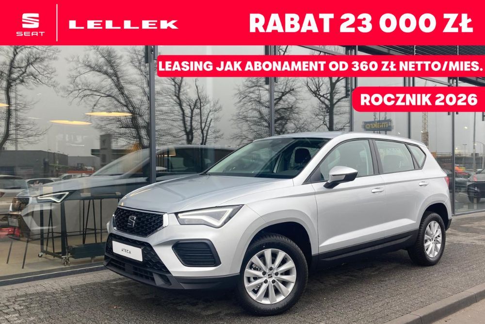 SAMOCHÓD DOSTĘPNY OD RĘKI!SEAT ATECA STYLE 1.5 TSI DSGKolor: Brilliant SilverSkrzynia biegów: automatyczna, 7-biegowaCena katalogowa – 156 500 złCena promocyjna - 133 500 złCena z ostatnich 30 dni - 156 500 złLeasing Jak Abonament- rata od 360 zł netto mies.*Opłata wstępna – 30%,Okres leasingu – 48 miesięcy,Roczny przebieg 10.000 km,Finalna rata określona w umowie. Oferta jest przeznaczona dla przedsiębiorców.WYPOSAŻENIE STANDARDOWE DOSTĘPNE NA STRONIE PRODUCENTA I U DORADCY HANDLOWEGO.